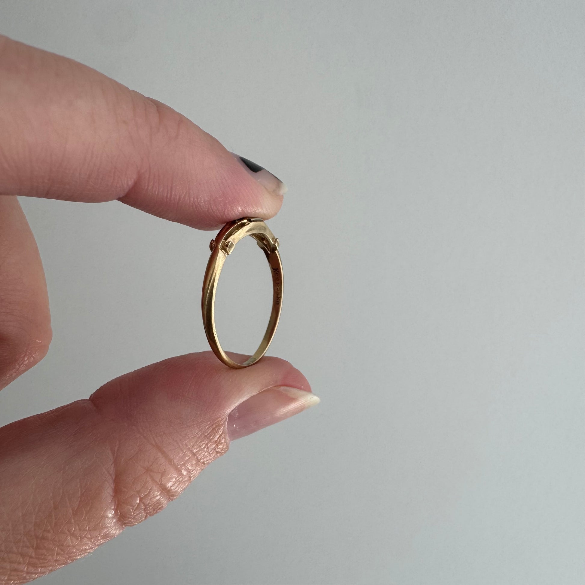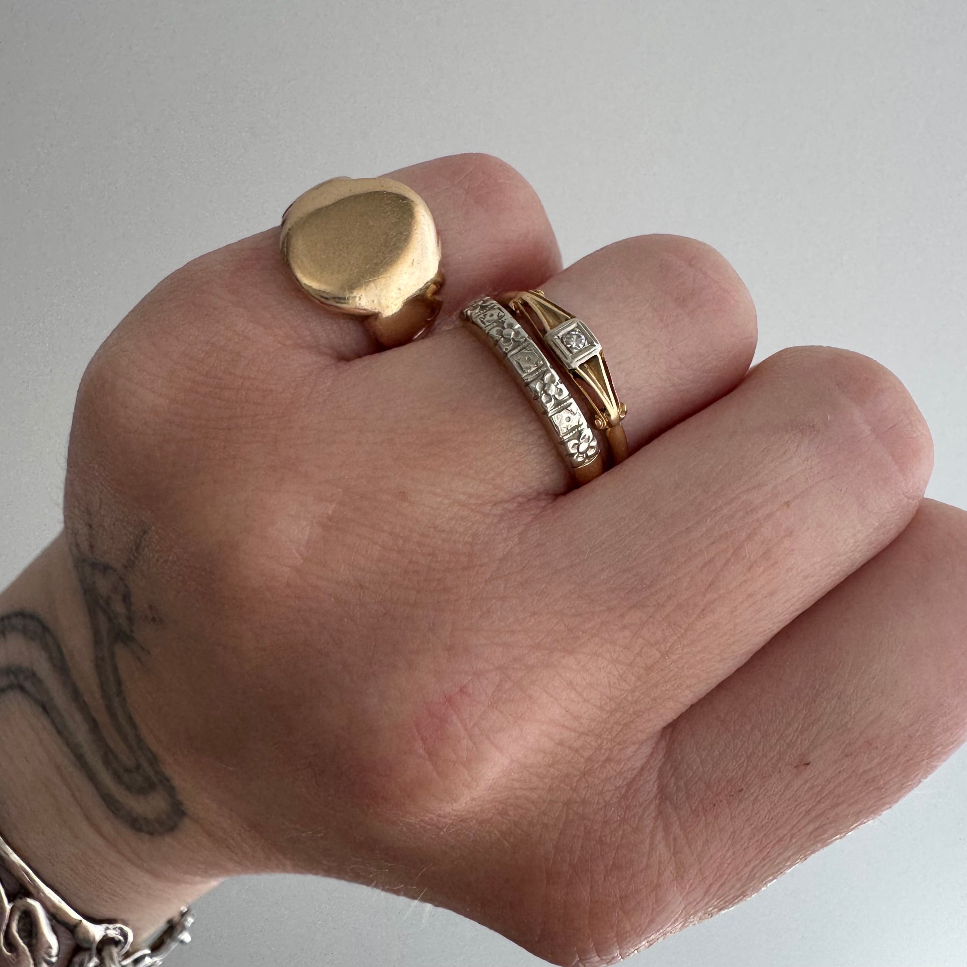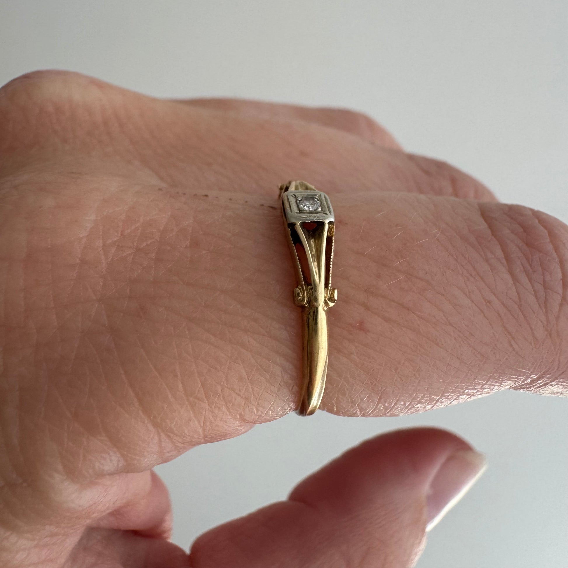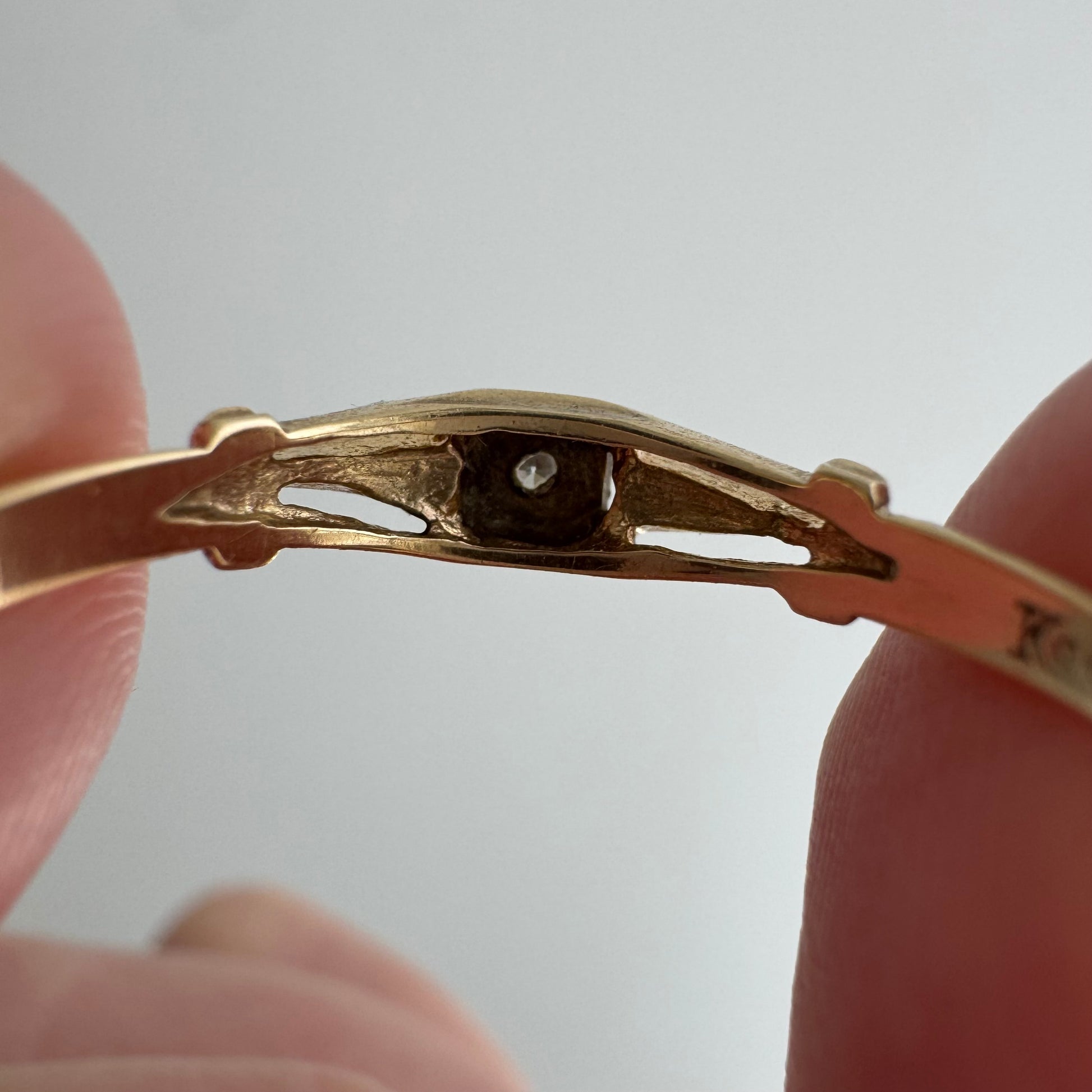 V I N T A G E / stretched eye / 14k and diamond art deco style solitaire stacking band / size 6.25