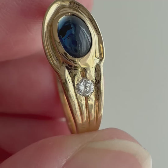solid 14k + natural diamond + blue stone testing as sapphire — it does have inclusions, which likely hints that it is a natural stone, though it hasn't been evaluated by a gemologist