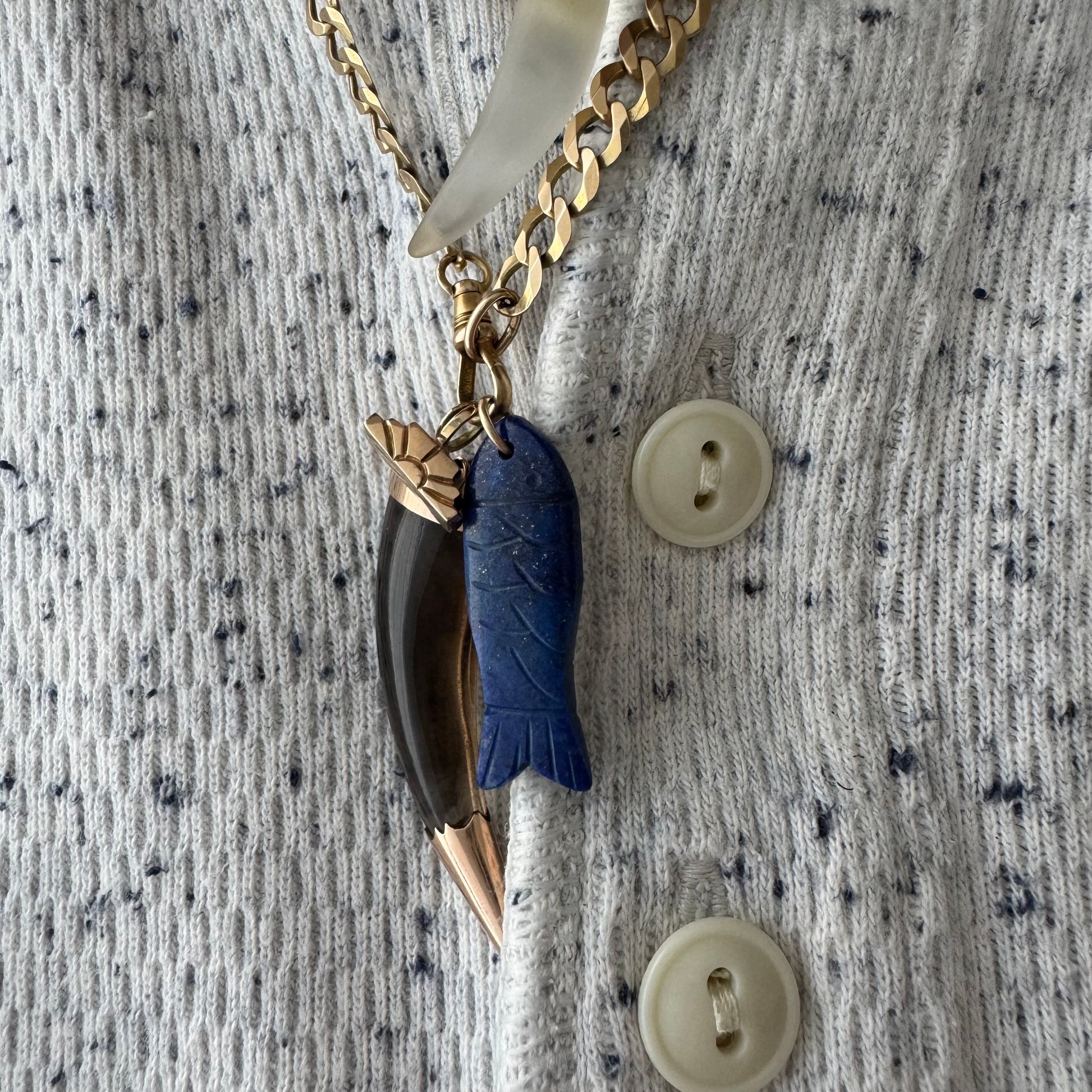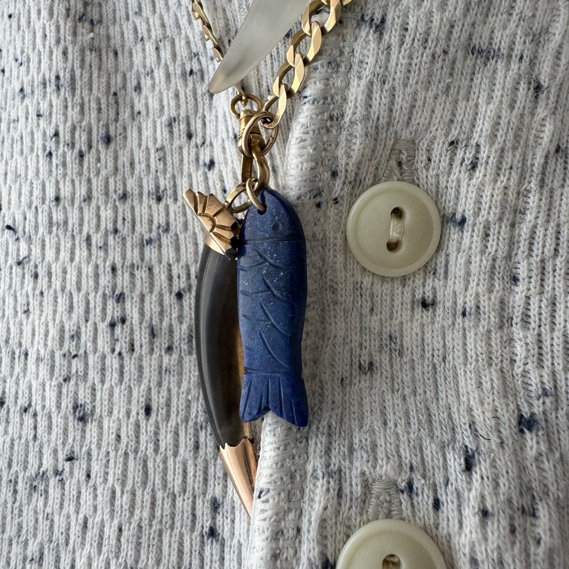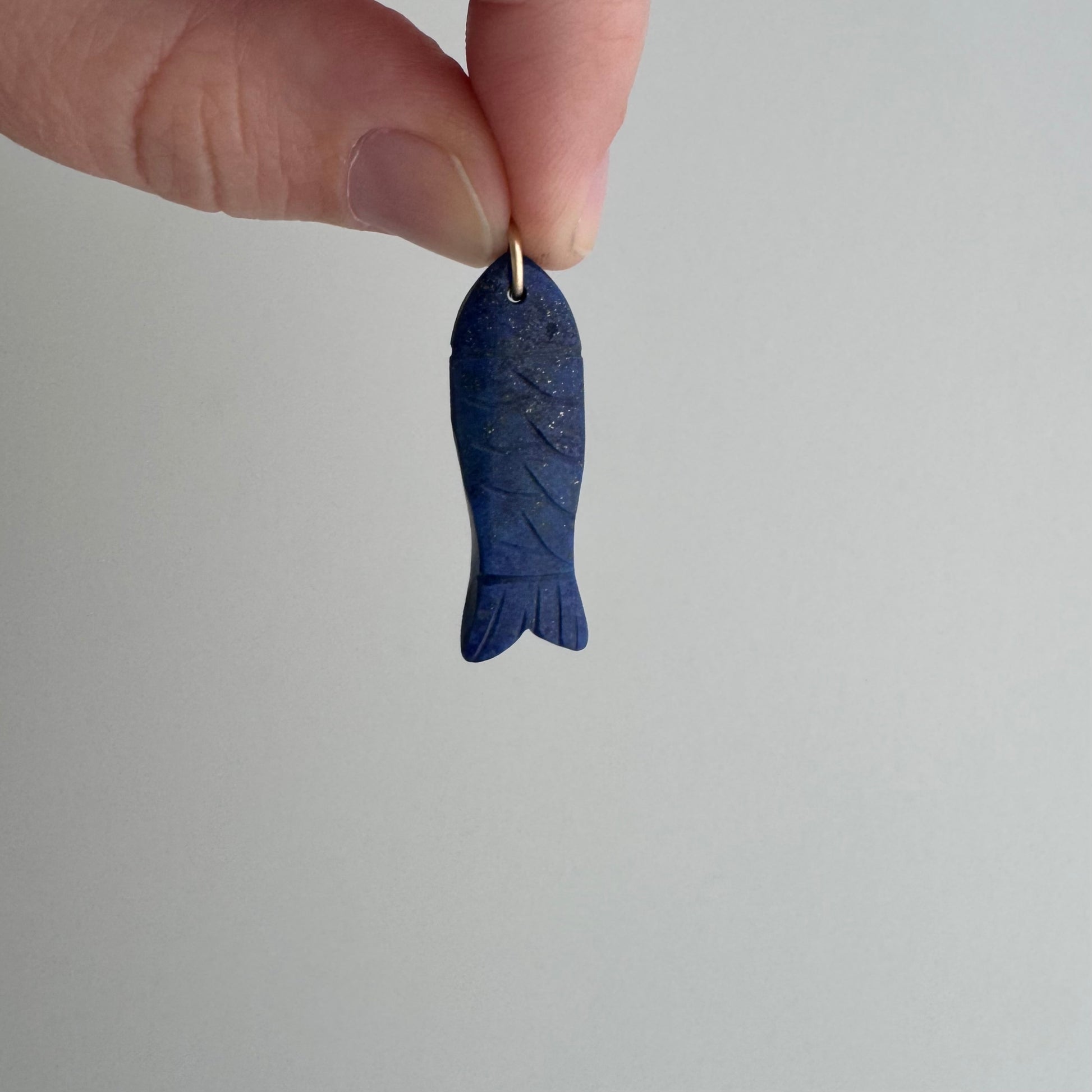 V I N T A G E // sweetest fish / carved lapis lazuli fish with 10k bail / a pendant