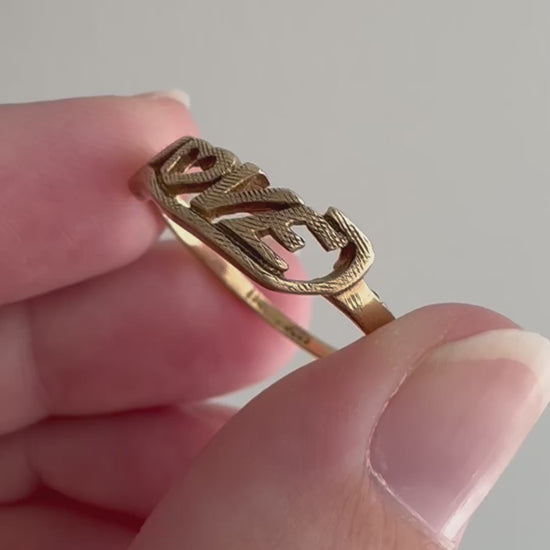 V I N T A G E // textured LOVE / 10k yellow gold LOVE word ring / size 8