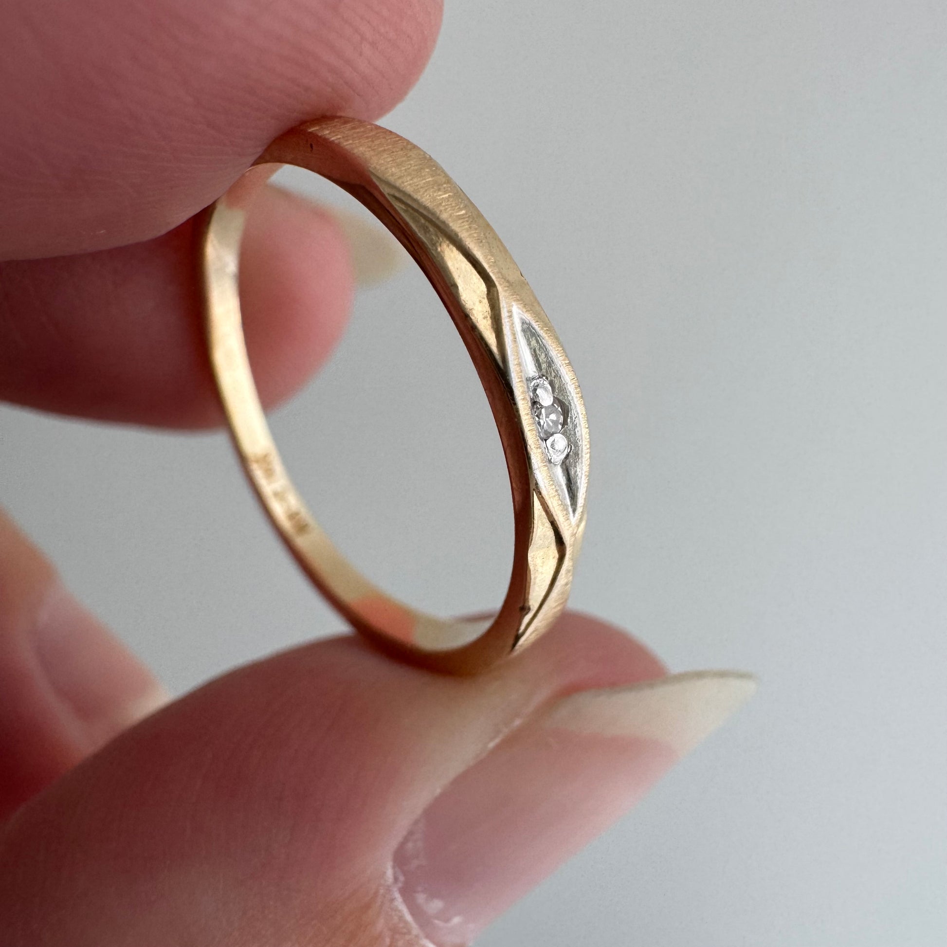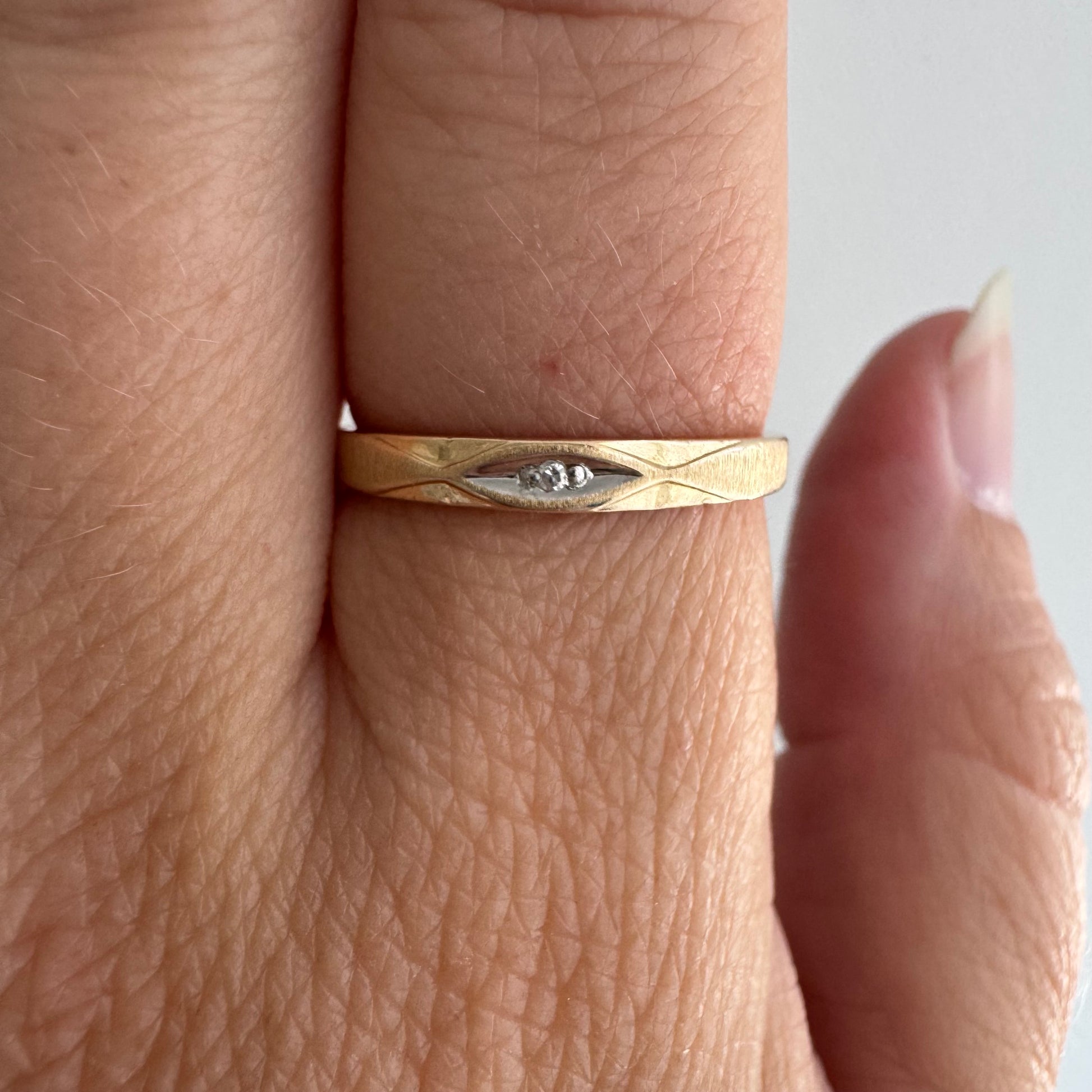 V I N T A G E // third eye / 14k yellow and white gold diamond solitaire band / size 5.75+