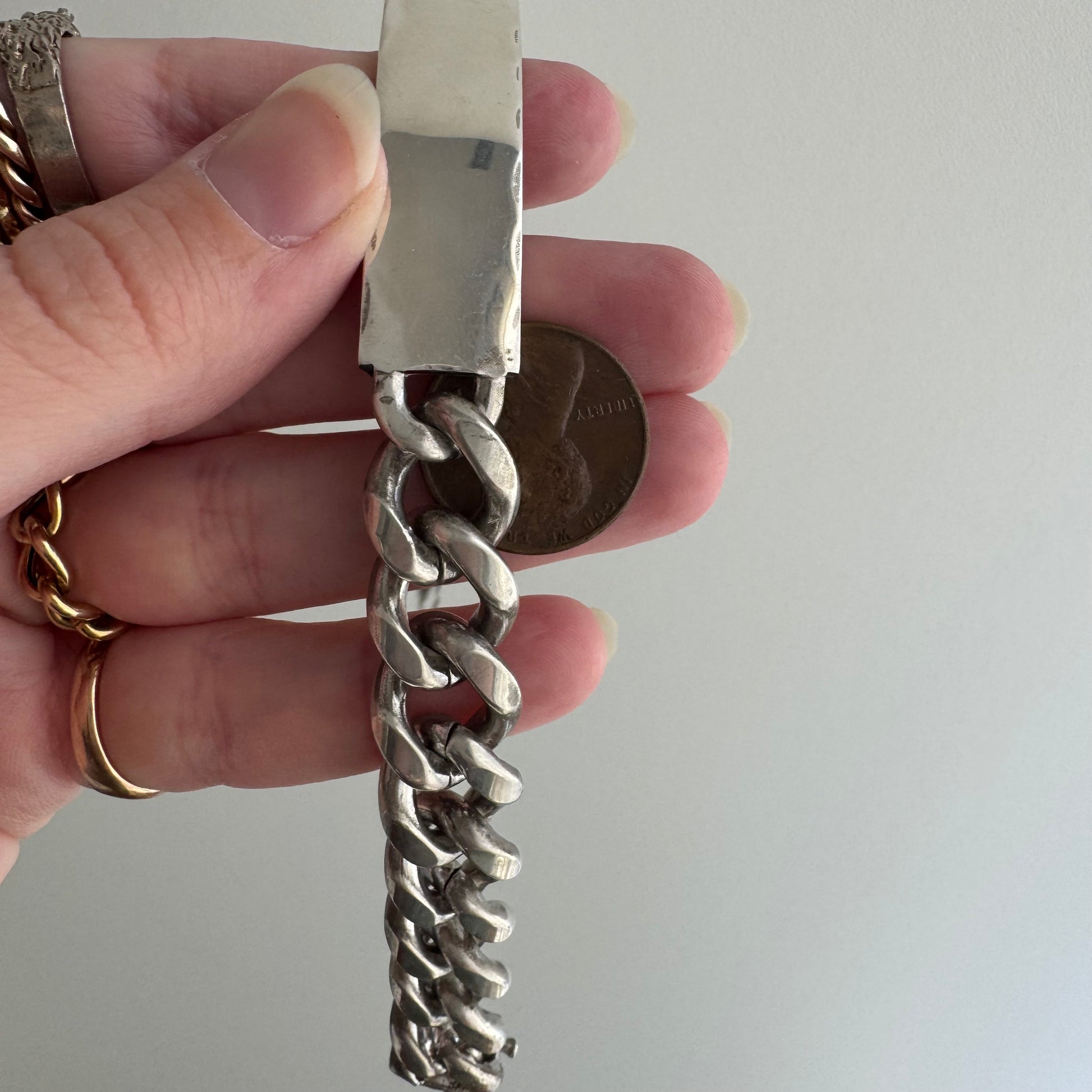 V I N T A G E // timeless ID / sterling silver heavy chunky mid century curb chain ID bracelet / 8.5", 64.5g