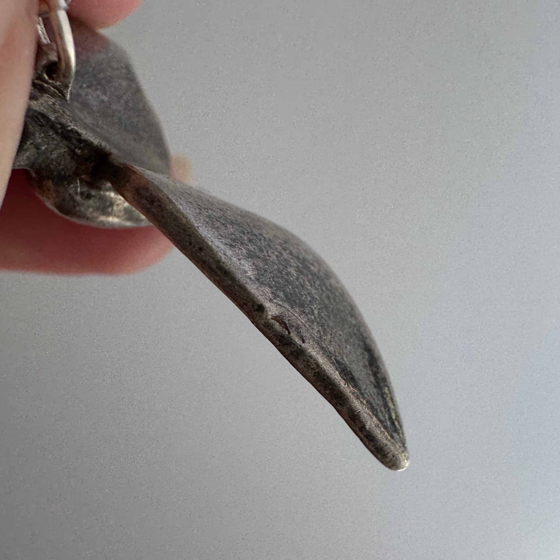 the surface imperfections throughout the silver's surface appear to be original, including a dent on the edge of one wing