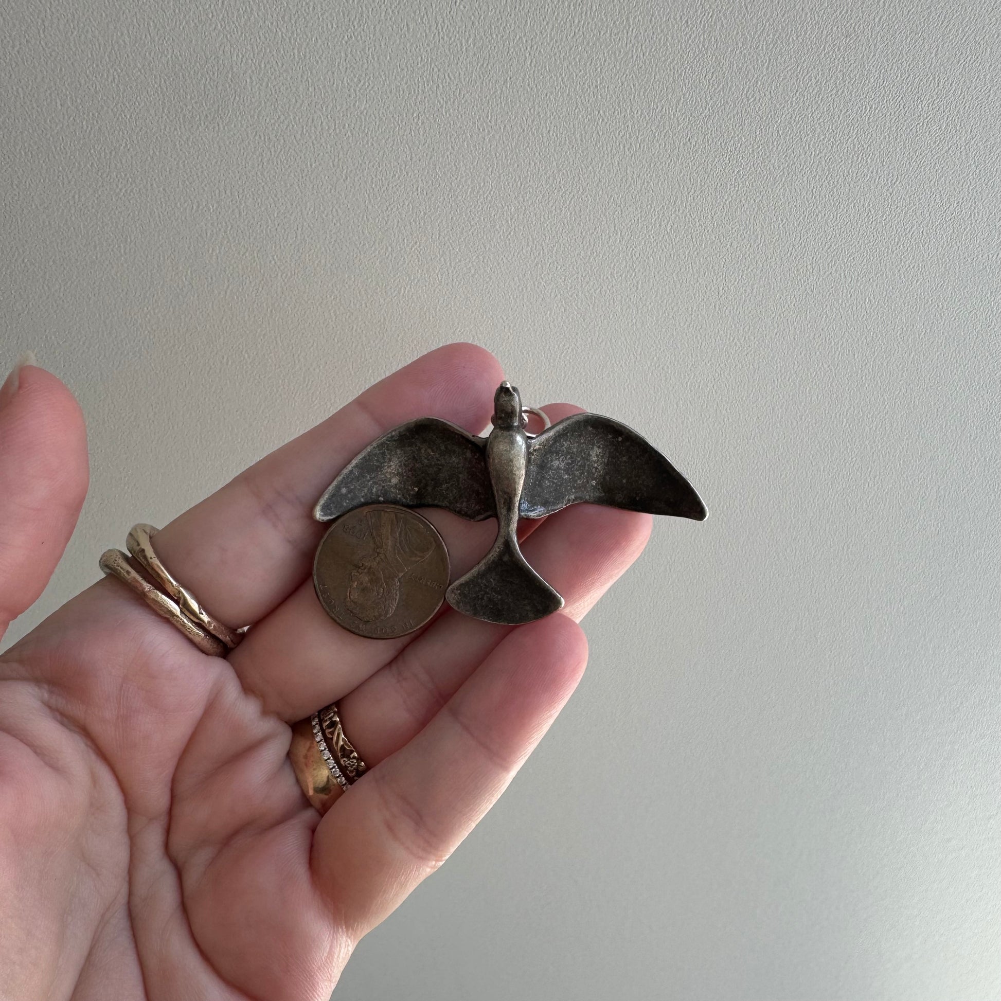 V I N T A G E // wing span / sterling silver fetish style bird / a large pendant