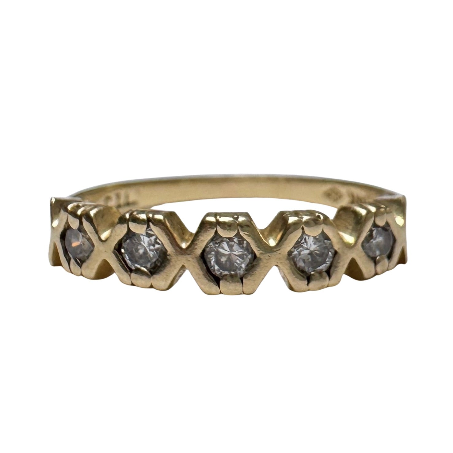 V I N T A G E // XOXOXOXOXOX / 14k yellow gold five stone diamond stacking band / size 6.25
